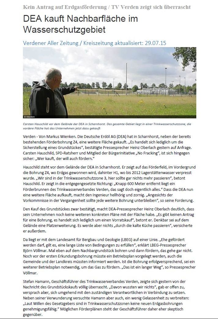 Im Bericht der Kreiszeitung wird der Erdgasförderer zitiert.